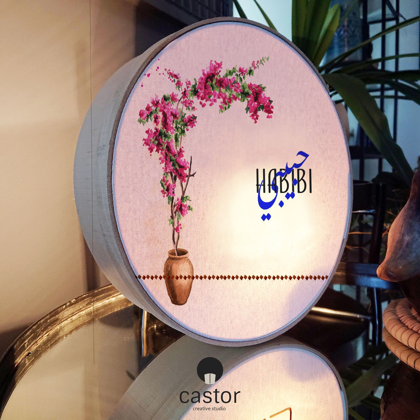 une lampe cylindrique, entièrement faite main, qui fusionne décoration et illumination. inspirée de la forme d'un tambourin ou tamis, elle est transformée en une œuvre lumineuse.type : lampe de table / lampe d'appoint, faite main. thème : scène de vie, architecture tunisienne, nostalgie. idéal pour : ajouter un point focal culturel et une ambiance feutrée.