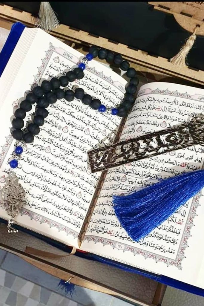 un écrin de spiritualité. coffret artisanal renfermant un coran, une sébile en véritable ambre, un marque-page unique et délicat. un cadeau authentique pour les âmes contemplatives.