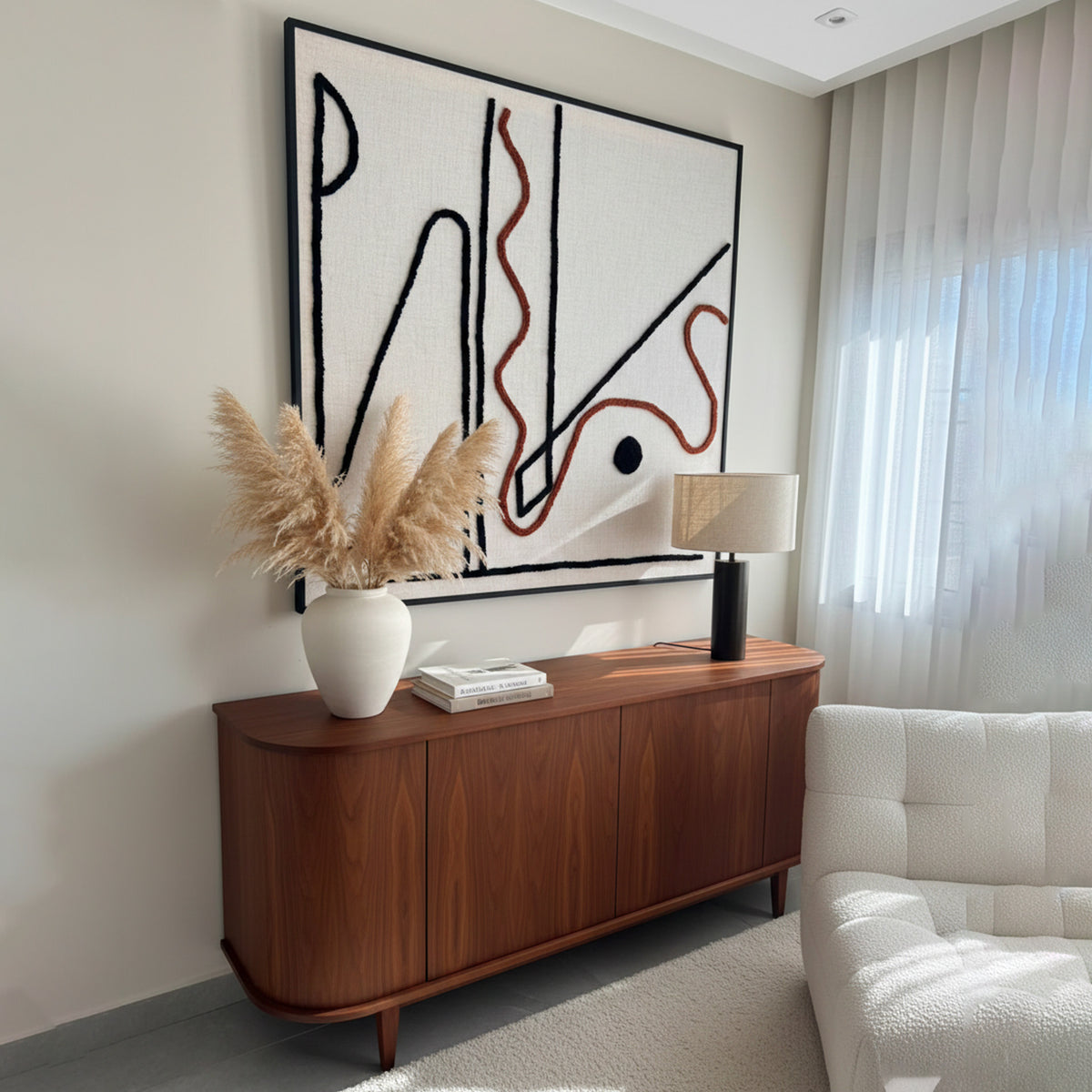 Sublimez votre intérieur avec cette œuvre murale unique, une fusion parfaite entre l'élégance du design contemporain et l'authenticité du savoir-faire artisanal. ce tableau se distingue par son tracé en "one-line drawing" (dessin à ligne continue), créant un mouvement fluide et une harmonie visuelle captivante.